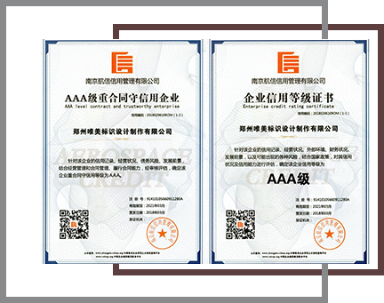 生產制作的每一件產品的原材料嚴格按照國家標準執行,產品質保最長10年;免費上門服務、免費深化標識設計方案、免費鄭州市內送貨上門;口碑廣為流傳、70%客戶來自于老客戶轉介紹;